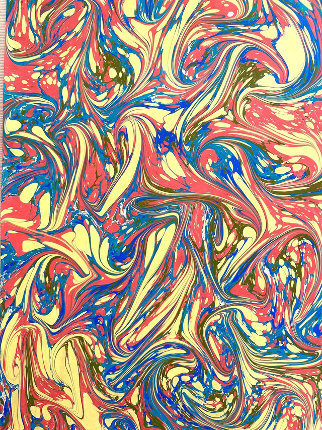 A3 Hand Marbled Paper, "Your Nan's Wallpaper" Pattern, 120gsm long grain